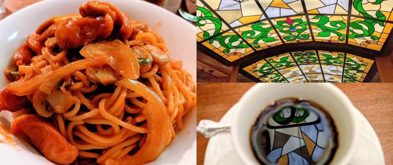 純喫茶「珈琲西武 西新宿」ステンドグラスを見ながらランチにナポリタンを